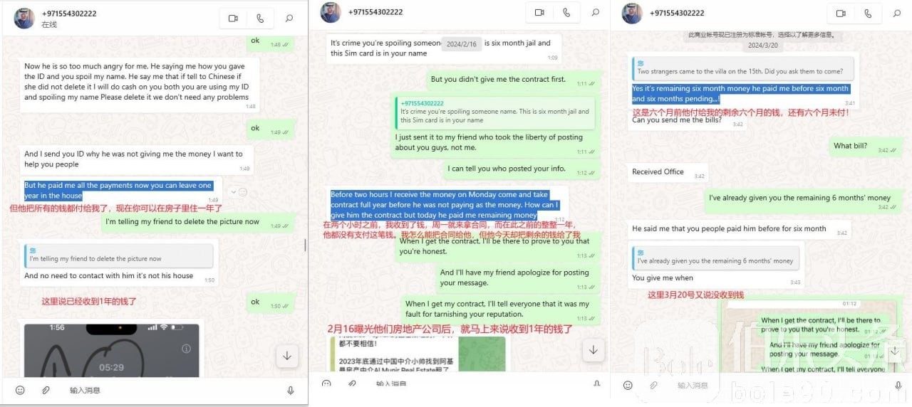 B中介说也联系不上A中介了,一会说A去开新的中介公司,一会说A回去巴基斯坦了,一会又说A进去监狱因为诈骗中国人的钱,现在曝光他们,大家小心点