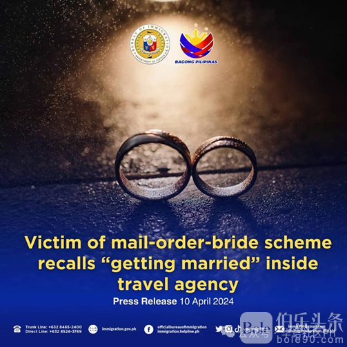 菲律宾马尼拉,2024年4月11日讯:近日,尼诺阿基诺国际机场(NAIA)1号航站楼的移民局(BI)官员成功解救了一名疑似成为“邮购新娘”计划的受害者——一名菲律宾女子。
