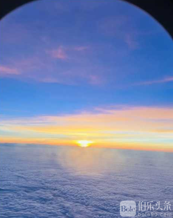 大概在早晨四五点钟,晨光照醒了正在座位上睡觉的我。我睁开双眼,在一片云海中看到了有生以来最美丽的一场日出