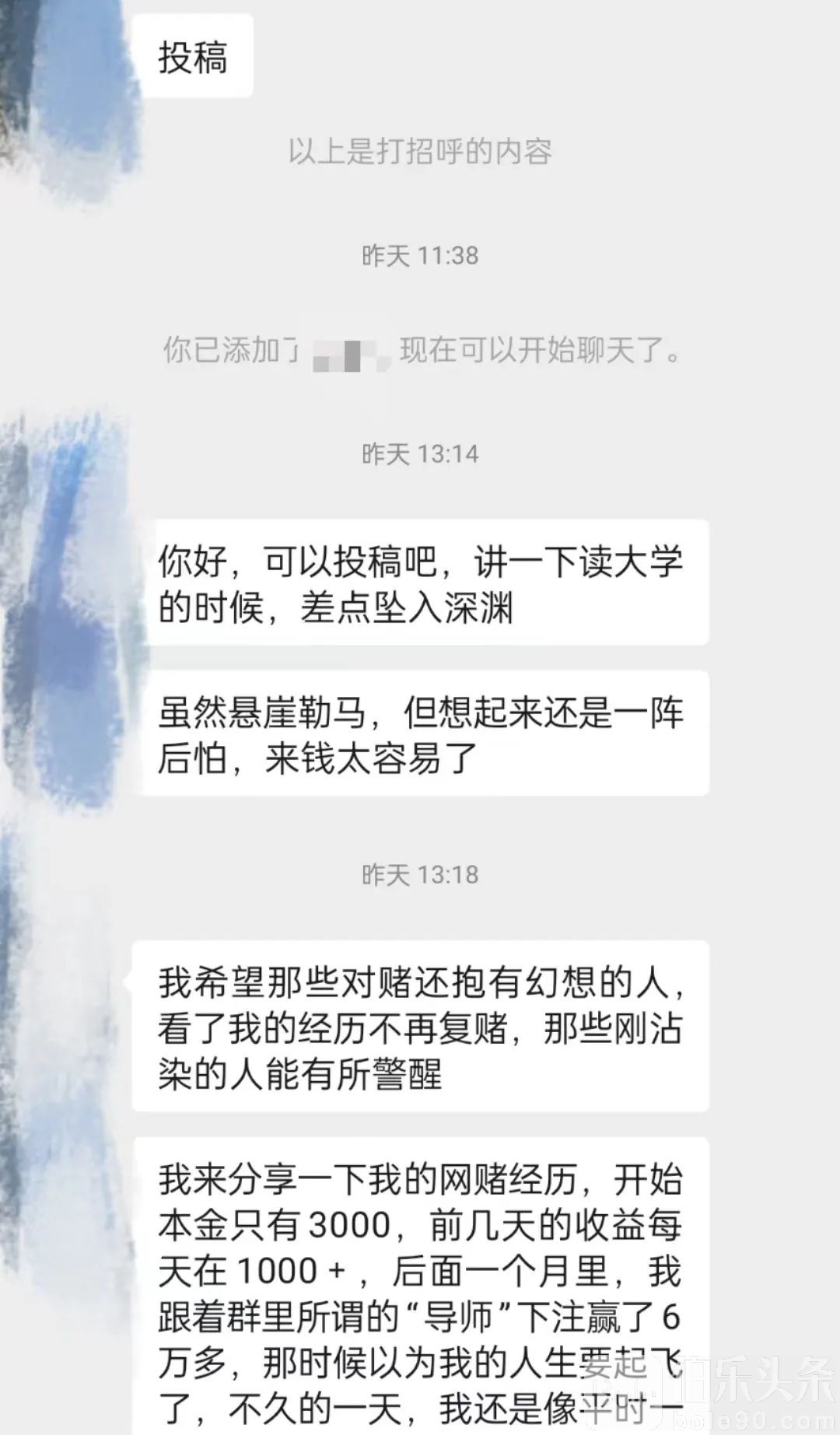 如今虽然已悬崖勒马,但想起来还是一阵后怕,赌来钱太容易了,我希望那些对赌还抱有幻想的人,看了我的经历不再复赌,那些刚沾染的人能有所警醒。