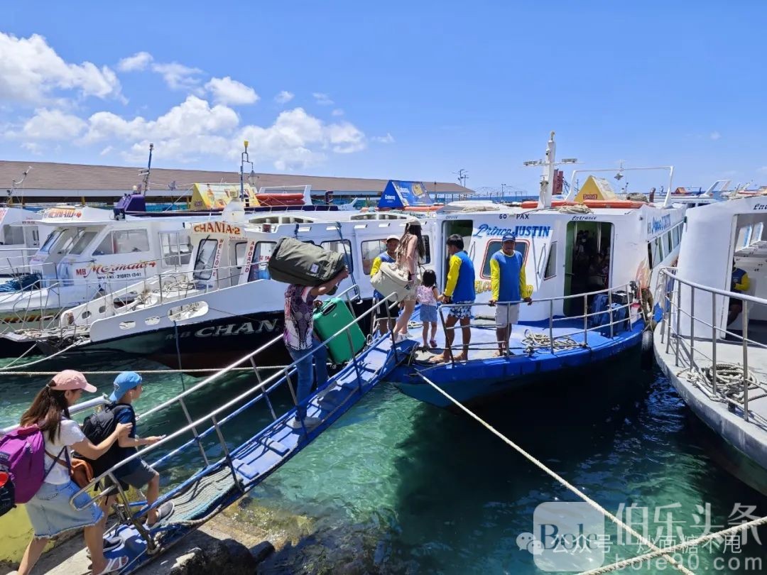 买齐就入闸检查各种票据,然后又要你填写上岛之后的酒店信息,搞掂之后给你船座位号码牌。持号码牌上船坐号码牌位置,开船后有工作人员收回,一会儿就到达长滩岛了。
