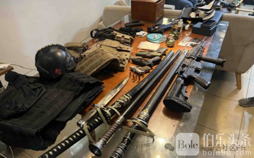 在行动中还查获了一把5.56口径的Daniel Defense Black Creek M4卡宾枪、两个5.56毫米弹匣和36发5.5毫米弹药;6发9毫米弹药;一支M16气枪;多种手枪、一枚手榴弹、战术背心和一个带有“中国”标志的战术头盔,以及各种身份证件、一面中国国旗和一个背包。