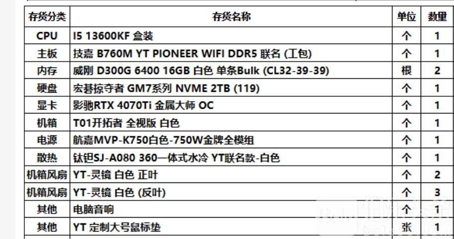 配        置:I5 13600KF+4070TI+32GB+2TB固态