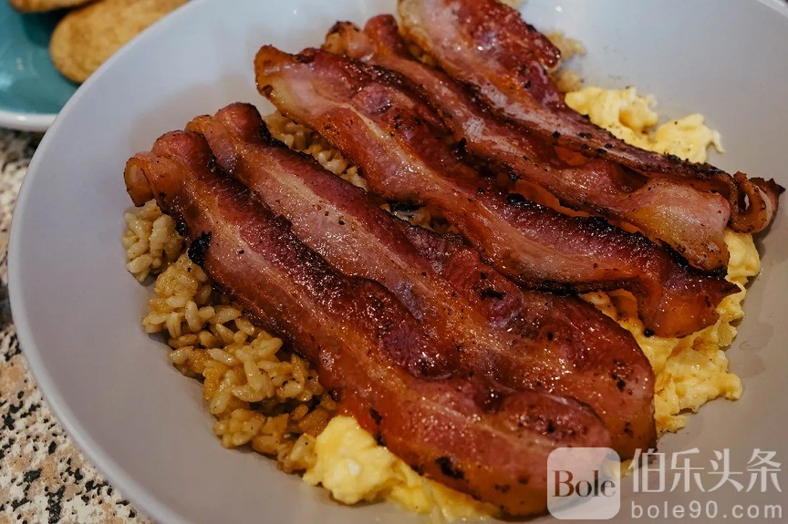 去的有点晚了,因为快到午餐时间了,所以没有太多选择。 所以,我最终选择了培根碗(P280)。 这道菜的特色是苹果木熏培根、煎蛋卷和大蒜糙米。 这是一道美味的菜肴。 这道菜的每一种成分都与美妙的香料结合在一起。 培根具有美味的烟熏、甜味和咸味。