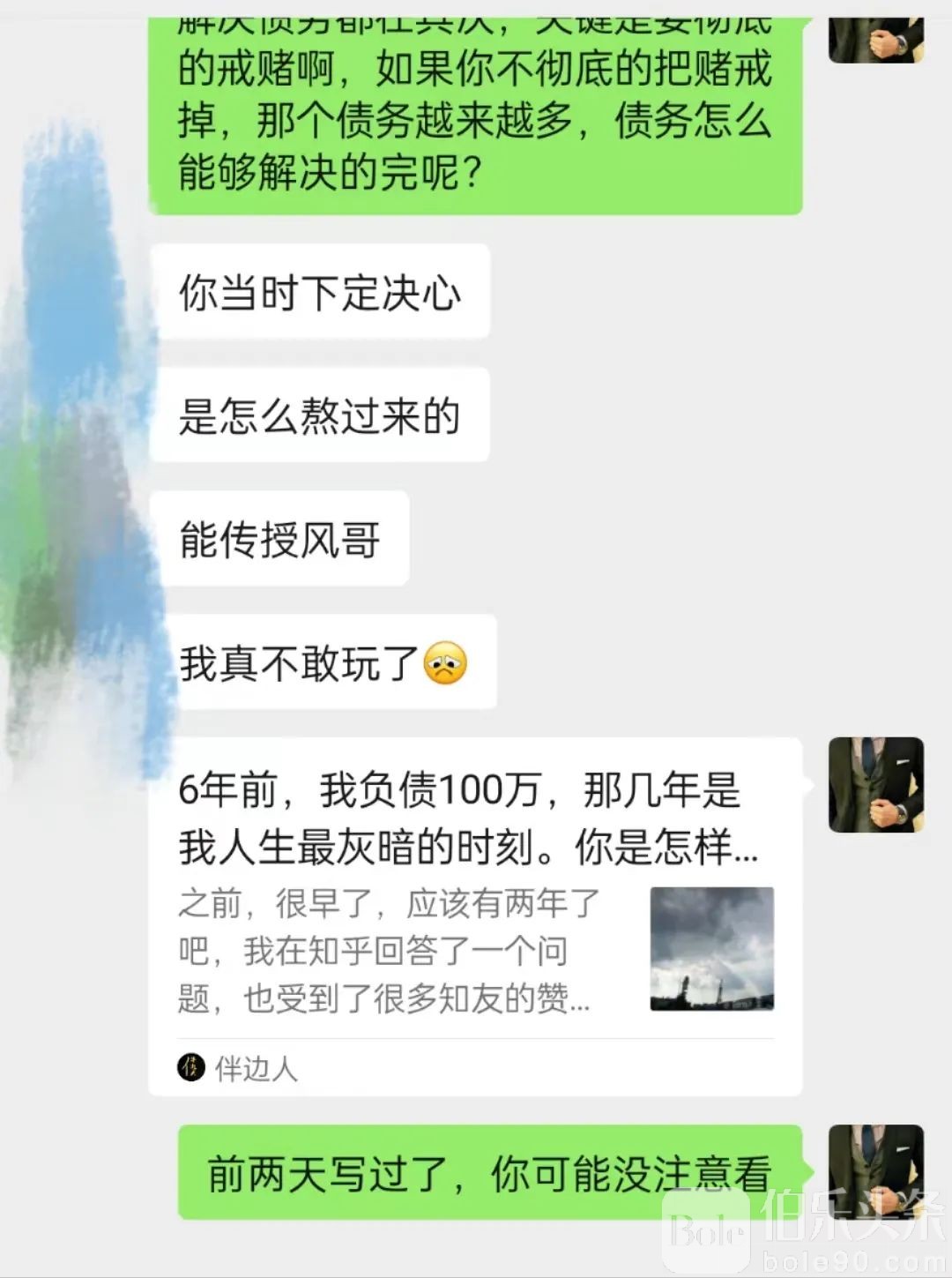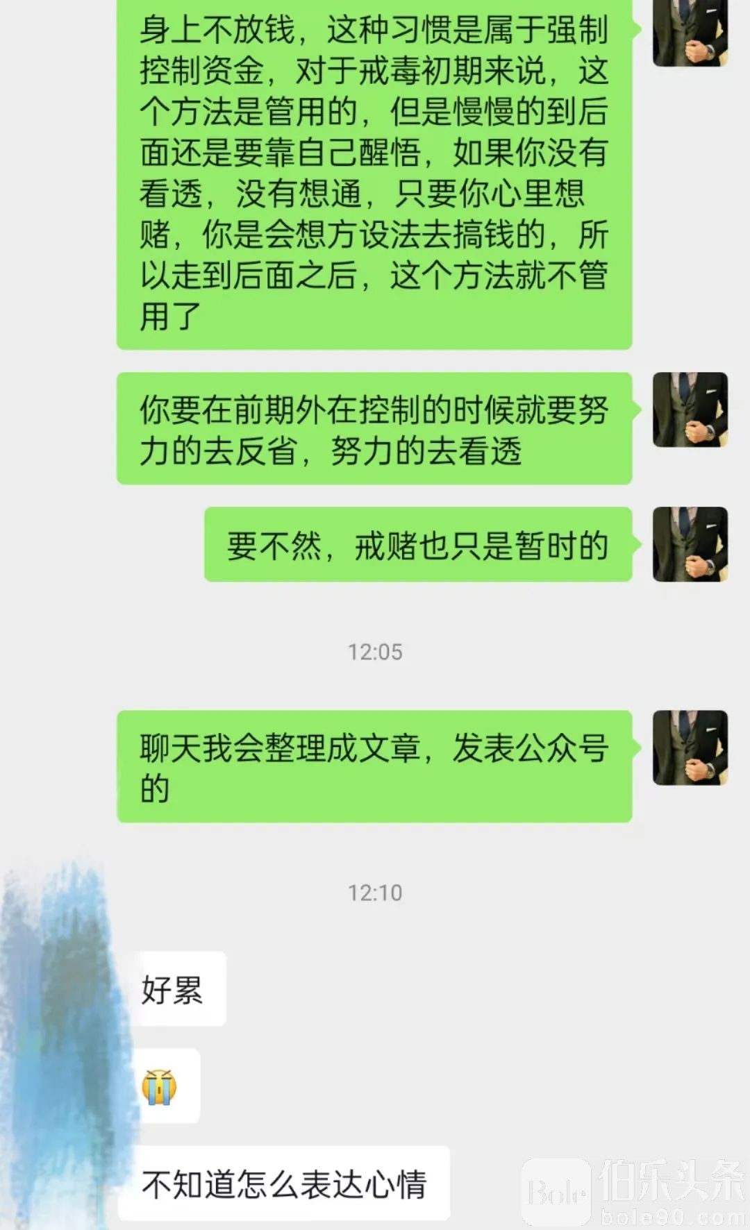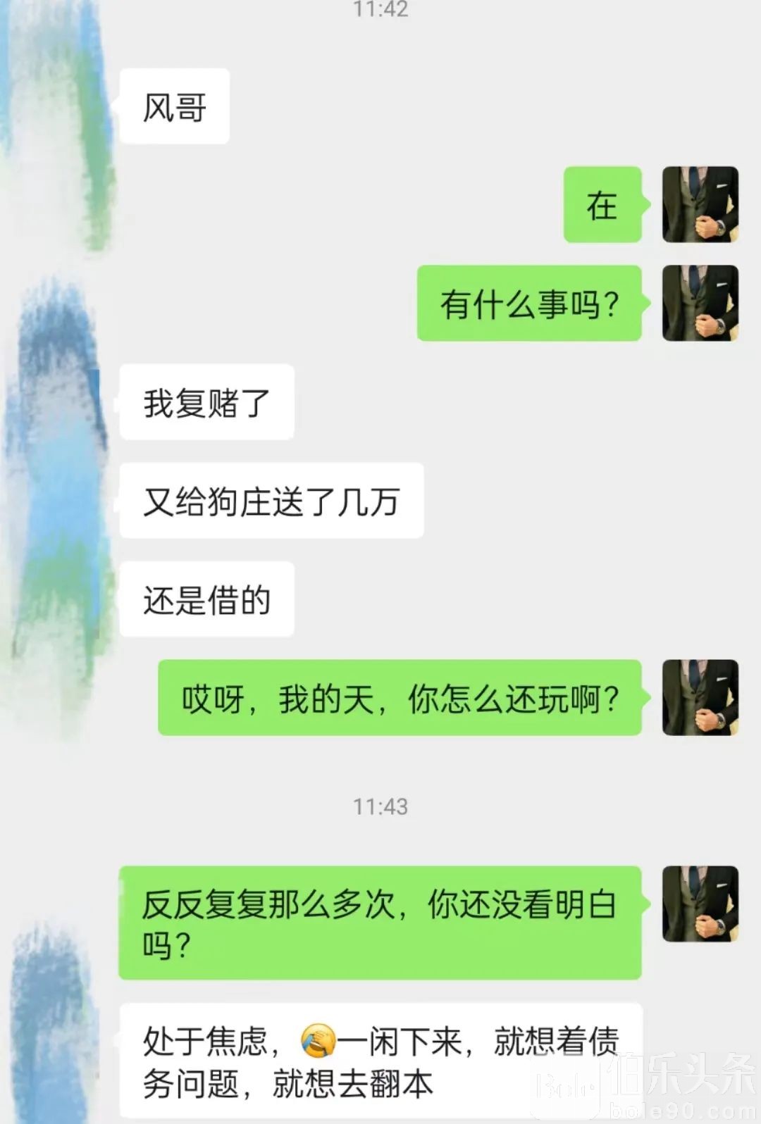 目前我还是在上班,刚刚忙空下来,有老哥就发消息了,说一个星期前又复赌了,不知道该怎么做了,人处于焦虑状态,一旦闲下来就想着债务问题,然后就想去翻本。
