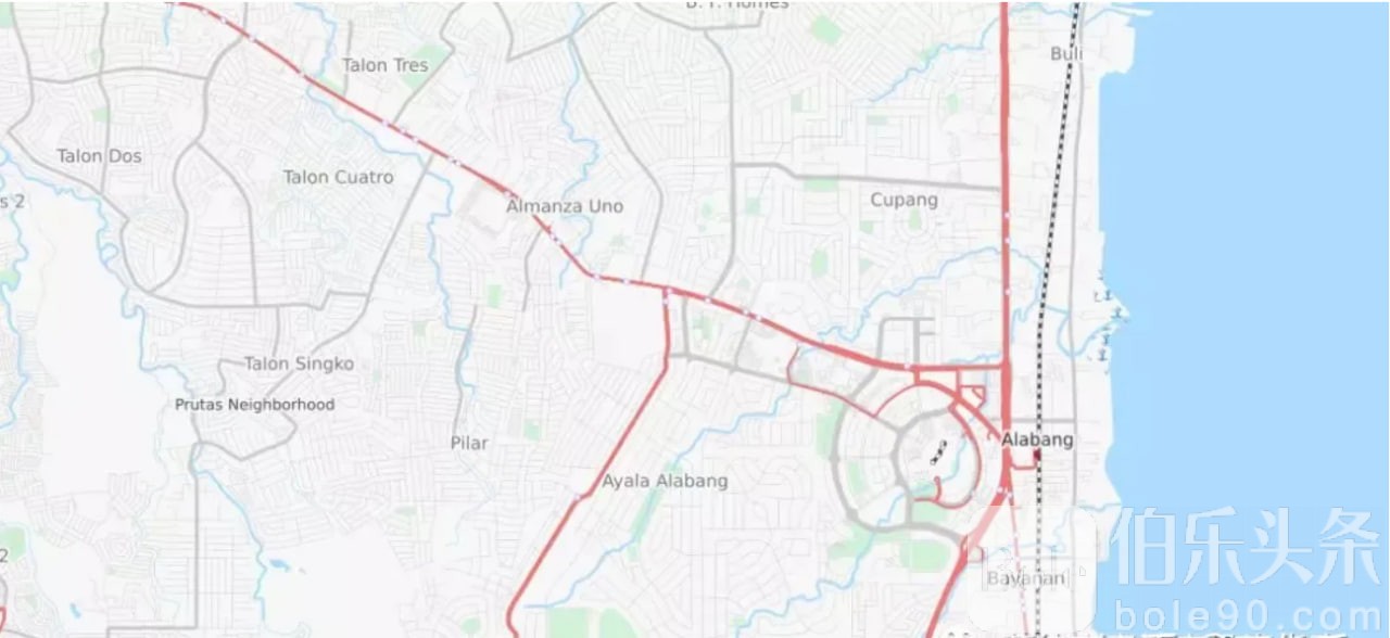 以机场为界,北边,是高密度的代表,南边确缺是低密度的代名词。而alabang位于机场上高速后出来的第一站,距离马尼拉国际机场10公里,第一个出口下来就是alabang的CBD,高速十分钟距离就到达中心,这也是为什么菠菜公司相中这块区域的原因,因为菠菜公司的选址其一就是交通,其二就是“希望周边什么也没有,让员工除了上班就是上班”,因为这里密度低,相对马尼拉其他几个地区没有那么乱,所以这里是他们理想的选址。