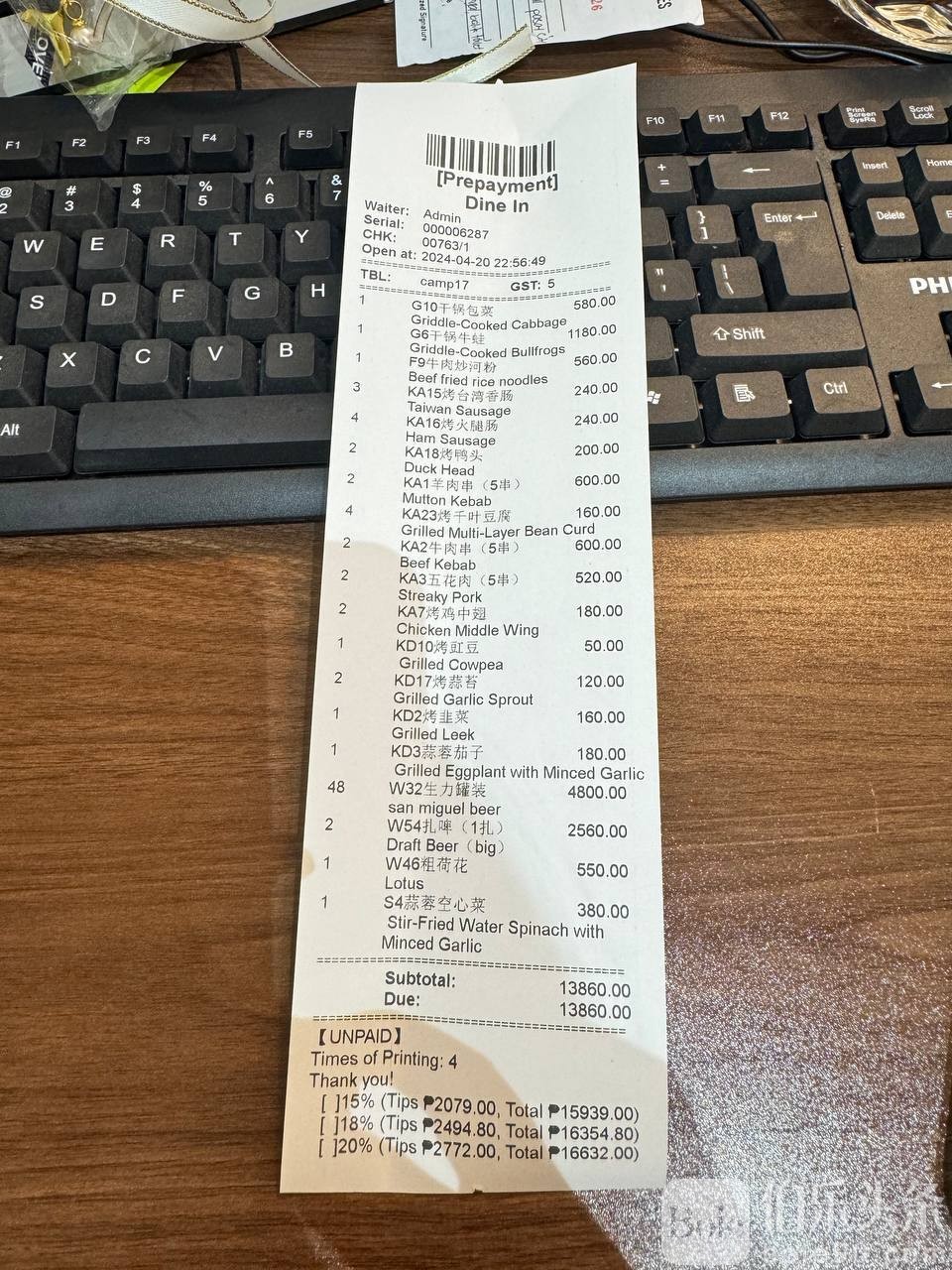4月20号晚上十点多来我们店室外camp17号桌吃饭的客人,到21号凌晨2点48分左右吃完结束没买单就离开了