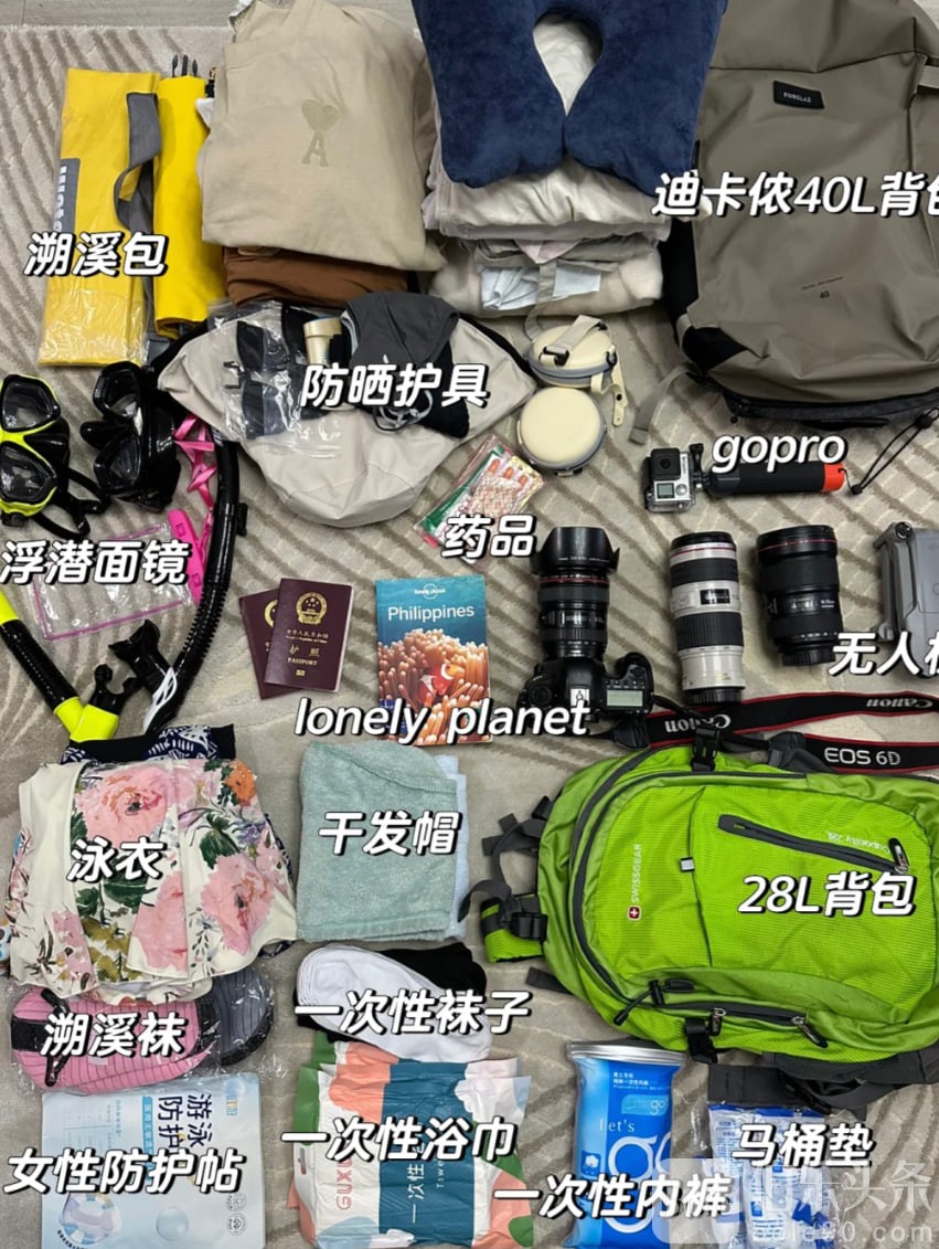 5️⃣迪卡侬40L背包:真的又大又能装,而且东南亚的廉价航空(宿务,亚航等等)都允许带上飞机,体积刚好,很适合说走就走的海岛游。