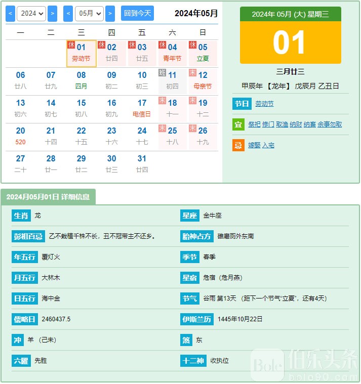#2024年5月1日,星期三,农历三月廿三,每天60秒简报
