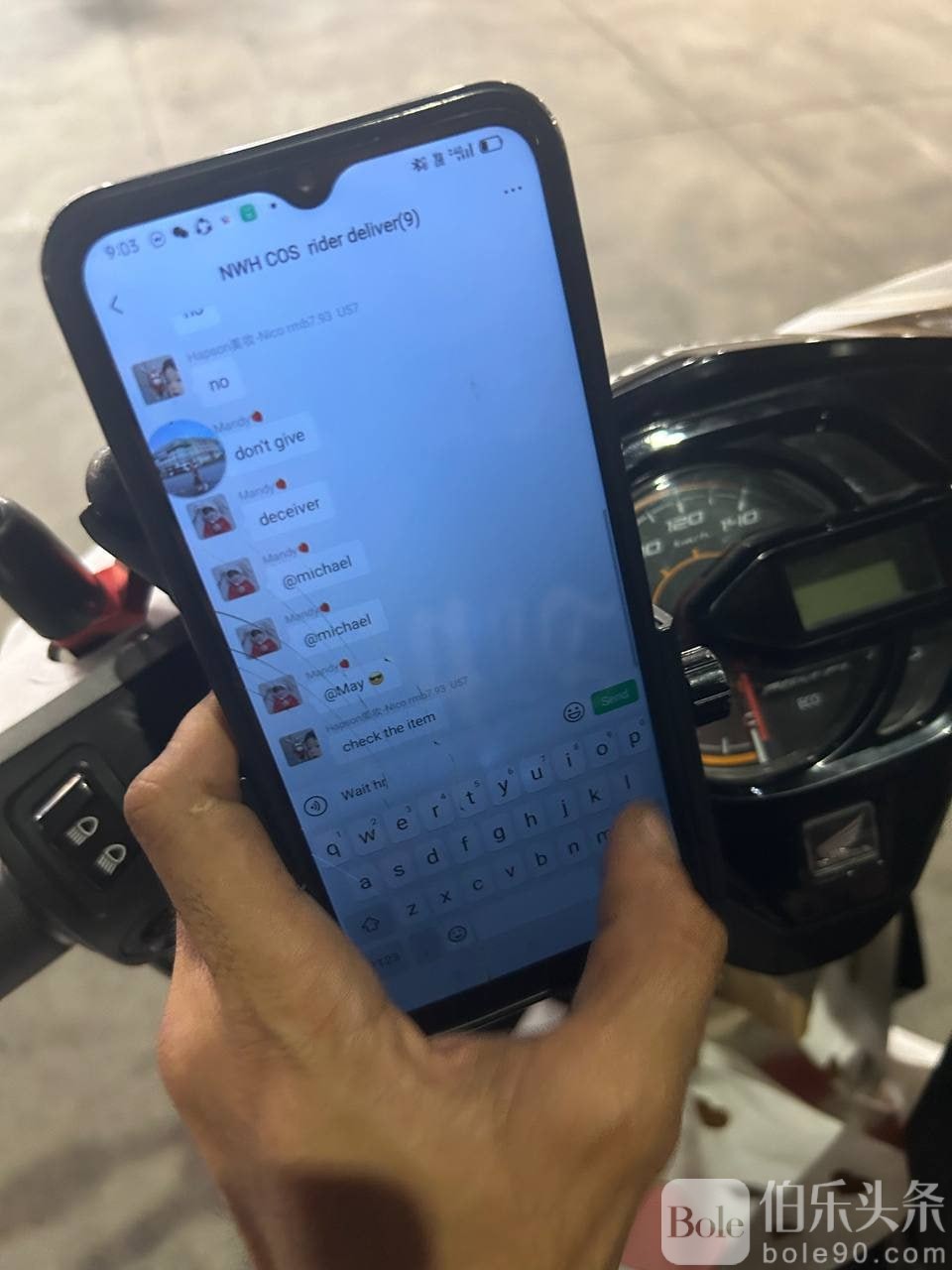 然后小菲送货的不给我东西说没收到钱 给他老板打电话 他老板说没收到,