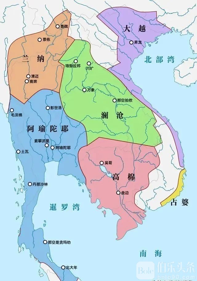 瞄上吴哥帝国的不仅是泰族政权,自10世纪从中国独立后,越南立足红河平原不断发展壮大。由于北方是强大的中国,东西方分别是海洋和高山,南下成为越南的主要扩张方向。