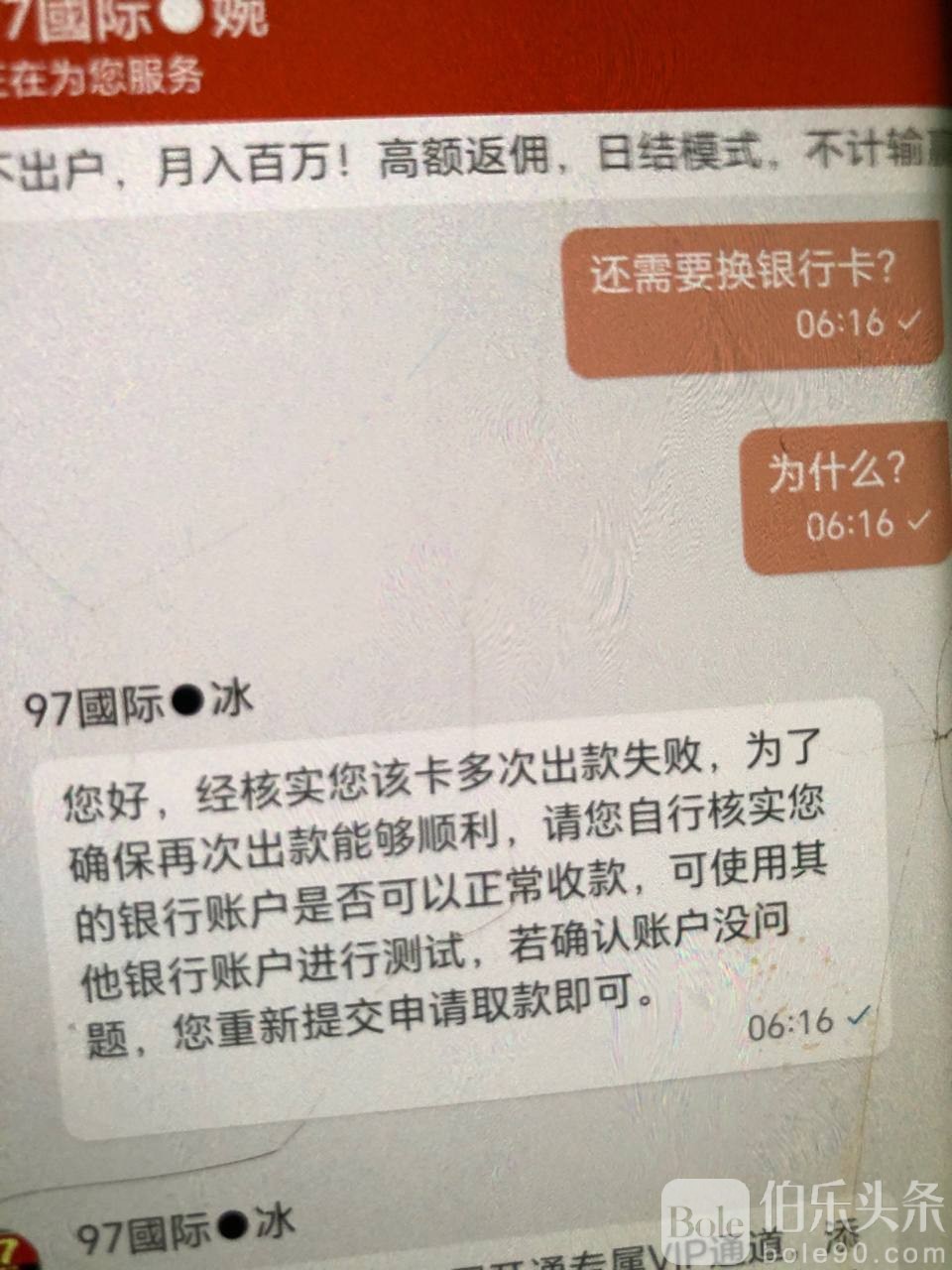 我自己转账都是好好的 ,而且是第三次提现了,前两次就可以提出来,然后听他们的换卡了,还是不给提现到帐,