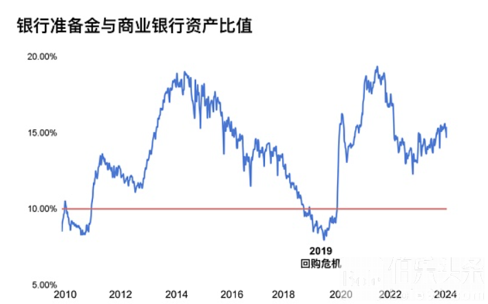 表一:CME降息预期分布,截止2024.4.29 但降息窗口的来临无疑需要非农就业差和通胀数据弱为条件,也就是经济降温,或需要金融条件再度收紧。不确定性来自于11月美国大选,首先美联储在选举前更改货币政策有影响选举结果的嫌疑,因此大选年联邦基金利率变动的分布范围小于非大选年,9月降息的决策将更加谨慎。同时也不排除部分美联储官员为了保增长、保就业而维持“鸽派偏好”,在经济数据仍有韧性的情况下支持降息。但从历史上看,过去17次美国大选和美国货币政策研究表明美联储在大选前(当年度11月前)开展转向操作的概率较低,而在大选结束后短期内开启转向操作概率相对较高,只有2次出现了在一年内从加息转变为降息的行为,4次出现紧接11月选举月之后发生联邦基金利率或货币政策转向。 综上,美国经济内需稳健,通胀反复,金融机构的降息预测普遍后移下半年甚至明年,CME数据表明9月和11月降息预期最大,但12月与次年1月的几率正在上升。但仍需要警惕降息的充分条件是经济差,因此在降息政策来临之前或许仍有金融市场收紧的情况。同时,从历史上来看选举月之前通常利率政策与货币政策(即9月降息)更加谨慎,而选举月结束后短期内转向的可能性更高。 3.3 美联储缩表周期扩表比降息的作用力度更大? 当前市场的注意力大多集中在降息预期,但实际上扩表对市场流动性的直接影响大于降息。上文提到了市场流动性指标 = 美联储负债规模 - TGA - 逆回购规模。扩表即美联储扩张资产负债表,通过负债的方式购买国债或抵押支持证券等资产来增加银行系统中的准备金和流通中的货币,创造货币增量直接扩大市场流动性,所以也被称之为“印钞”。而降息则是通过降低借贷成本,激励企业和个人增加投资和消费,转移资金至风险市场提高流动性。 何时转变货币政策? 资产负债表正常化的进展取决于准备金的供求,根据纽约联储行长Williams等在2022年发表的文章《Scarce, Abundant, or Ample? A Time-Varying Model of the Reserve Demand Curve》:“准备金需求曲线是非线性的,以准备金与银行资产比值衡量充足度,12%~13%是过度充裕和适度充裕的临界点,8%~10%则是转为缺乏的警戒线。”金融市场表现往往是非线性的,这一点已从市场中得到体现,2018年准备金率接近13%后快速非线性回落至8%,当美联储宣布缩表降速时已回落至9.5%,最终于2019年10月重启扩表。