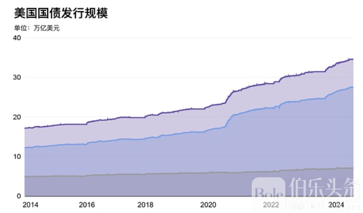 图四:美国金融市场流动性 综上,短期来看,5月份结束税收季,TGA增长超过预期,机构预测美联储年中会开启缓解QT进度,缓和流动性紧缩趋势。但中长期来看,市场缺乏流动性新增长动力,美国金融流动性受美联储缩表进程、逆回购规模接近耗尽的情况下具有持续下降进一步影响风险资产,日本央行货币政策调整将提高流动性风险的不确定性,对科技股、加密资产甚至大宗商品和黄金都将带来一定的下行风险。 2.2 美债风险美债波动率过高曾是2020年3月的“股债金三杀”事件中的重要诱因,近期美债收益率飙升再次暴露美债市场供需失衡的潜在问题。 2.2.1 供给超发 2023年赤字率达到了-38%,同比上涨10%,飙升的高额赤字率意味着今年保持增发美债的需求。疫情大放水造成的高债务高赤字的财政状况与加息周期叠加,2023财年未偿债务总额的加权平均利率为2.97%,持续加重美国需偿还的利息总额。2023年新增美债2.64万亿,2024年新增美债0.59万亿,当前总额达34.58万亿。 短期来看,4月29日财政部给出的再融资预期呈现增发趋势,具体需跟踪财政部正式发表的季度再融资计划。尽管以野村为代表的机构预测普遍认为由于去年工资水平上涨导致4月财政部税收收入意外增多,当前财政部TGA账户大幅增加,比预期多出2050亿美元,耶伦可能会降低融资预期。 中长期来看,市场普遍预计今年美国还有2-2.5万亿的发债规模,那么今年还将发行1.41-1.91万亿,平均和24年Q1速度接近。2025年1月1日将停止“暂停美债债务上限”的法案,为了防止美债危机重演,在结束暂停发债上限之前,财政部有动机发行足量美债以保证暂停后的短期政府开支与正常运作。华尔街预计,无论谁在11月的总统大选中获胜,美国政府都会继续大量发行债券。