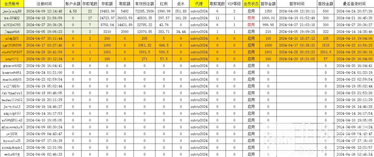 2、该事件发生时引起我司高度重视,本着对合作伙伴和对行业负责的态度,我司特成立专项调查组,对该合作伙伴代理线进行多次复查,经调查核实该代理【 ozbty2024 】在我司注册成为代理之后,4月份首存用户8个,经包网风控审核,两个会员 bao92482、mi5264393 套利已禁用, jwcjiang88 虚拟币存款地址关联多平台已被处理,其他为一次性用户同模式领取首存套利。综合以上,代理线质量审核未通过,我司本着合作共赢的原则,承诺代理伙伴如后续正常发展不受影响;
