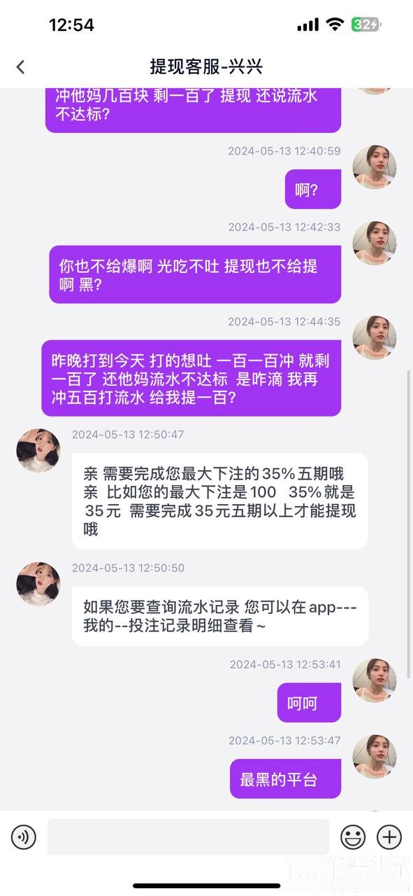 黑平台问鼎 问鼎娱乐 最黑的平台 没有之一  一百一百冲 冲了一千又一千 流水也打不上去 充值两千块 只打四千块流水 冲多少 杀多少 还天天喊着大品牌的广告让去拉人头 杀的剩一百块 提出来吃口饭 都提不出来 说流水不够 从昨天晚上到今天中午 冲了有几千块 流水也3800了 提现100说流水不够 我笑了 大家避雷 别玩这个平台了 黑的一批