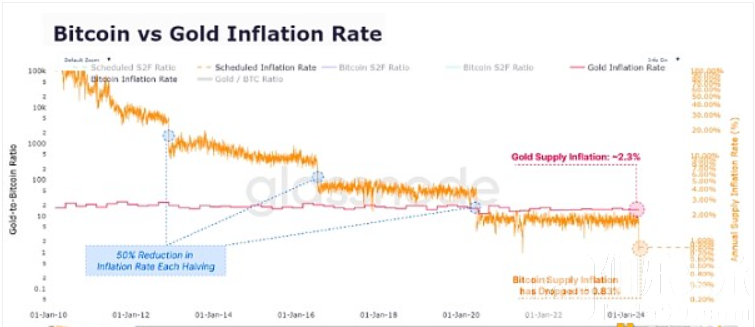 此外,交易流量(无论是流入还是流出)都非常高,平均每天达 81.9 亿美元,大大超过了上一次牛市期间观察到的峰值水平。 币安虽然在现货交易中仍占有相当大的市场份额(37.5%),但其主导地位已较前几年的较高水平有所下降,这表明各个平台的市场活动正在扩大。 减半的影响4月中旬,比特币经历了第四次减半事件,日供应通胀率降低了50%,年发行率降至0.85%。 这一减少强化了比特币的硬通货地位,标志着比特币在发行稀缺性方面首次超越黄金。 与此同时,发行量的减少并没有对市场动态产生重大影响,因为与全球交易量相比,新开采的代币只占很小的比例。 现货和衍生品交易量继续主导市场,新增供应量占资本流动总额的比例不足0.1%。 另一方面,比特币在几个重要指标上达到了新的里程碑。 该网络的基本面在各种指标上都显示出显著的趋势。 随着矿工投资于高效硬件和优化运营成本,网络算力达到了历史新高,确保发行量的减少不会影响安全预算。 这项投资表明补贴减少对矿工来说并不是障碍。 尽管由于生态系统的扩大,网络统计数据的增长率有所下降,但这些指标的绝对值却创下了新高。 特别是,在过去四年中,通过比特币网络转移和结算的价值高达 106 万亿美元。 这一令人印象深刻的数字凸显了比特币有能力保持其作为主要结算网络的地位,无论波动性和周期性回撤如何。 应对市场调整4 月最后一周,比特币市场在减半事件后进入盘整阶段。 继 3 月份 73,000 美元的峰值之后,价格范围在 60,000 美元到 66,700 美元之间。 在此期间,卖方压力加剧,因为短期持有者(STH),特别是那些在过去 1-6 个月内购买 BTC 的人,主导了市场损失。 尽管抛售压力加大,但未实现净损益(NUPL)指标表明市场仍处于牛市的“兴奋”阶段。 然而,自调整开始以来,该指标也显示出有意义的降温。 来自已实现重大亏损的 STH 的抛售压力成为当地市场低点的一个关键指标。 我们可以观察到在过去 1 周到 1 个月内购买 BTC 的 STH 的成本基础是市场情绪的关键指标。 他们的已实现损失往往在当地市场底部附近达到峰值,这表明该群体中卖家的疲惫往往预示着即将到来的逆转。