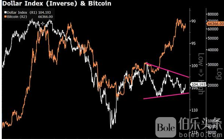 12 个月 M2 货币供应量 5月初,M2货币供应量自2023年11月以来首次同比转正,表明投资者可能很快就会开始寻找比特币等通胀对冲工具。 Coutts 表示,如果美元跌破 101 大关,美元的价格走势可能会成为比特币价格的另一个催化剂: “美元是区间波动的。 跌破 101 将成为比特币的火箭燃料。”