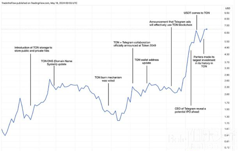 我们将在本文深入探讨一下TON。对于一个当前排名前十的代币,我仍然觉得大多数人都不了解这个区块链都发生了什么。 加密货币领域最老牌基金Pantera最近宣布,他们对TON进行了其有史以来最大规模的投资。 本文将研究TON生态系统的创世故事、当前的指标意义,以及生态系统的机会。现在就有很多激励措施,所以你可能希望通过本文找到你的alpha。 1、创世故事TON的故事始于2017年,当时Telegram创始人Durov兄弟开始为他们的业务探索区块链解决方案。但由于他们找不到任何能够承载Telegram 10亿级用户群的L1区块链,他们对现状发起挑战,设计了自己的L1:Telegram Open Network,也就是TON(后更名为“The Open Network”)。 2017年12月3日,该团队发布了TON白皮书,几周后,他们开启了有史以来最大的封闭式ICO,通过出售TON代币(称为“Grams”)筹集了17亿美元。现在有了这些钱,需要做的只剩下一件事:建设。他们就是这么做的,2019年,他们发布了前两个测试网,将代码开源。 然而,他们在美国证券交易委员会那里遇到了麻烦,因为他们被指控在他们的ICO中进行了未经注册的证券发行。这推迟了TON代币的发布,直到法律问题得到解决。Telegram在2020年被迫将ICO资金退还给投资者,支付1850万美元罚款,并停止对TON的支持。这就是TON改名为“The Open Network”的经过。 但这并没有让这个OG区块链消亡,另一个实体——TON Labs——决定独立将这个项目继续下去。 2、TON的重生虽然所有这些监管问题都给TON带来了很多障碍,但该团队并没有停止提供服务,直到最近,当Telegram于2023年9月再次正式宣布与该区块链合作时,围绕TON的讨论才热闹起来。从那一刻起,势头开始回升,TON攀升为第九大加密项目,目前的FDV约为250亿美元。