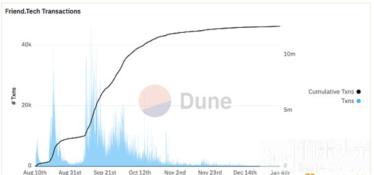 虽然这些概念已经存在了很长一段时间,但直到Friend Tech发现了代币门控聊天的潜力之后,它们才获得了市场的高度关注。用户需要被称为“密钥”的代币(可以交易),这些代币能让用户受益于内容创作者日益高涨的受欢迎程度。 Friend Tech在巅峰时期拥有80万唯一地址用户,但随后,留存率大幅下降。