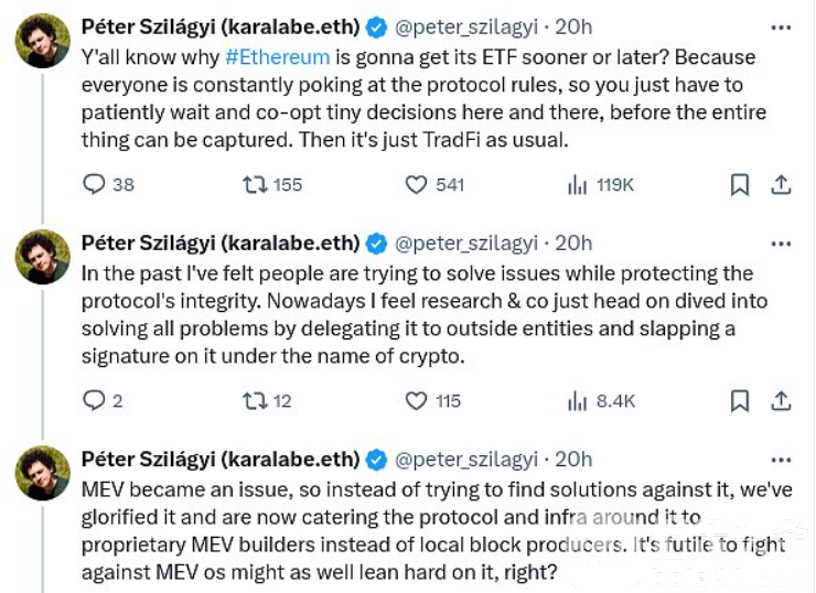 以太坊客户端团队共同努力交付Pectra devnet 鉴于技术能力的增强,需要提出的一个重要问题是:我们是否正在朝着正确的目标前进? 长期的 Geth 核心开发人员 Peter Szilagyi 最近发布的一系列不满的推文促使我们思考这个问题: