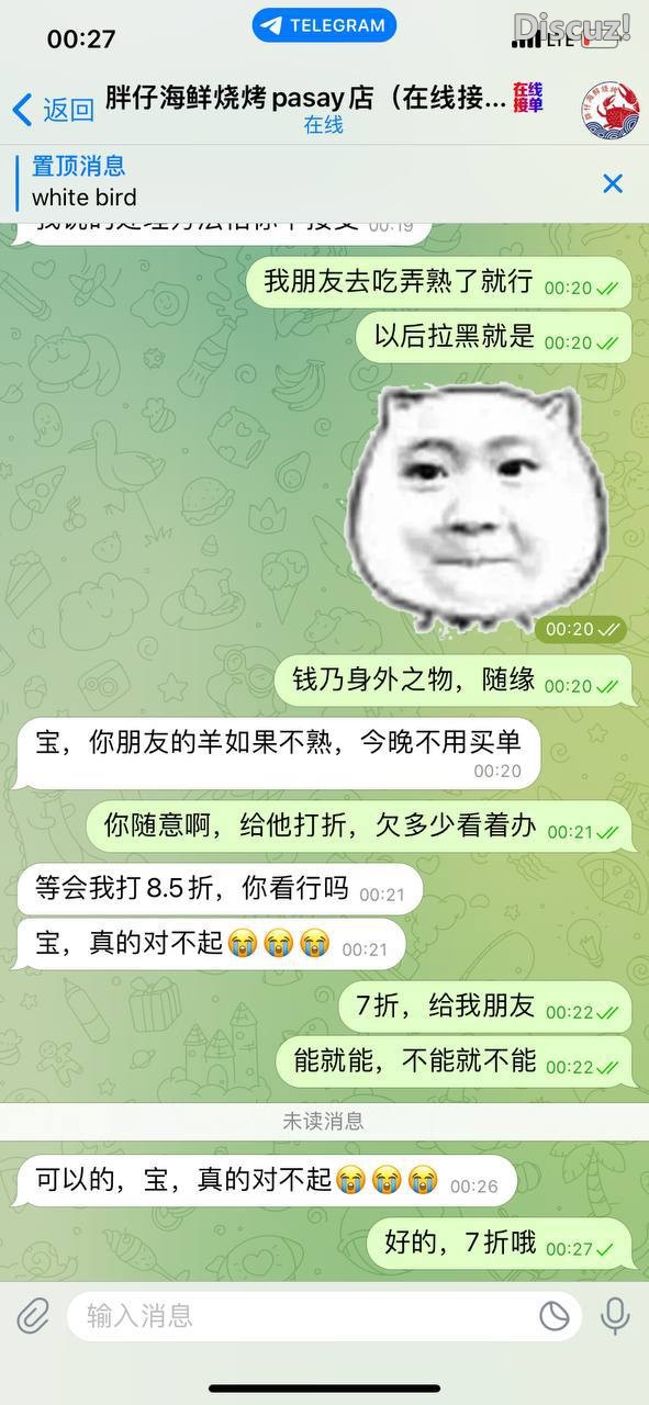 这家我第一次点外卖 有个螃蟹面 就是几只螃蟹加个挂面 2000p,我忍!第二次点两只烤全羊 第一只送来公司 没熟透,笑死我了,答应去店里吃的打7折 真牛逼,吃完就烤全羊打折,其他的一样买单,花了两万4,第一只羊花了16800,第二天我一看,把答应我打7折的记录删了,真牛逼,4万就当吃他家的席了,真是个有爹生没娘羊的杂种,大家注意‼️避坑⚠️   杂种飞机  @pzhx888