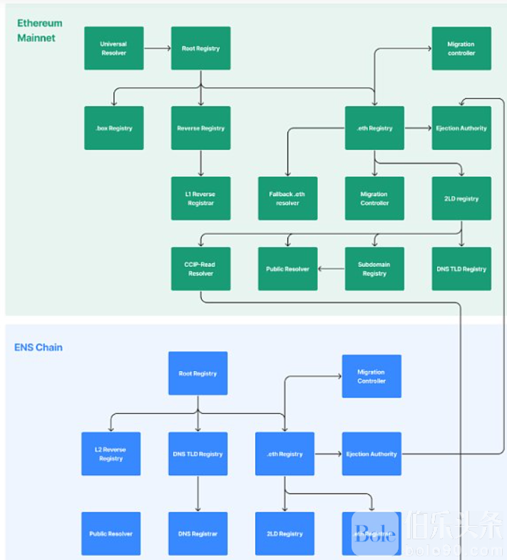 凭借 NFT 支持的域名,以太坊域名服务 (ENS) 自 2017 年成立以来一直是以太坊应用场景的基石。 现在,ENS Labs的协议管理员刚刚介绍了他们迄今为止最大的开发提案:ENSv2。 该提案将把 ENS 扩展到尚未选定的Layer 2网络,以降低成本、加快交易速度并增强功能。以下是该系统基础知识的详细介绍,以及为什么它标志着一个重大飞跃。 为什么要迁移到Layer 2?当然,将 ENS 过渡到 L2 的主要动机是可扩展性。 L2 执行链下交易,同时确保以太坊主网上的数据完整性,从而加快交易速度并显著降低 Gas 费用。 采用 L2 将使 ENS 更容易被更广泛的用户群使用,并为新的集成铺平道路,这要归功于 .eth 域名注册和续订的 Gas 费用的大幅降低。 然而,这不仅仅与成本和速度有关——ENSv2 也是一个改造机会。如果获得批准,该系统将引入新的分层注册系统。