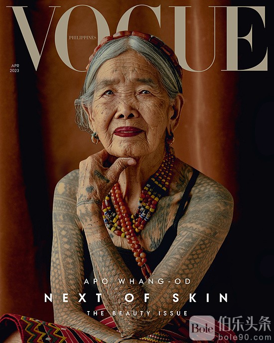 Apo Whang-Od 是菲律宾活生生的传奇人物,他为保存卡林加部落传统纹身艺术 Batok(具有数百年历史)做出了贡献。 106岁时,Whang-Od受邀为《Vogue》时尚杂志拍摄封面。照片中的她依然保持着健康、清透的容貌。她也是出现在这本著名杂志封面上最年长的模特。