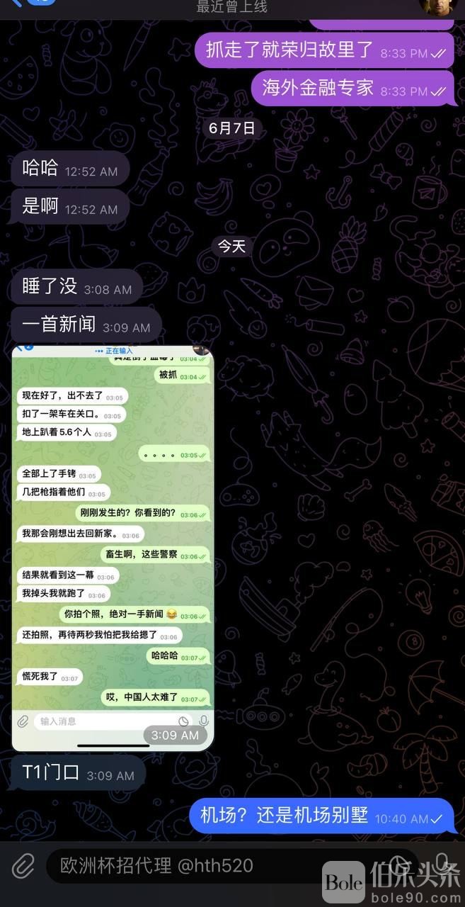 今天(8号)凌晨,伯乐头条接到网友爆料,T1门口惊现警车围堵下班的中国狗推!个个被戴上了手铐、被枪指着。