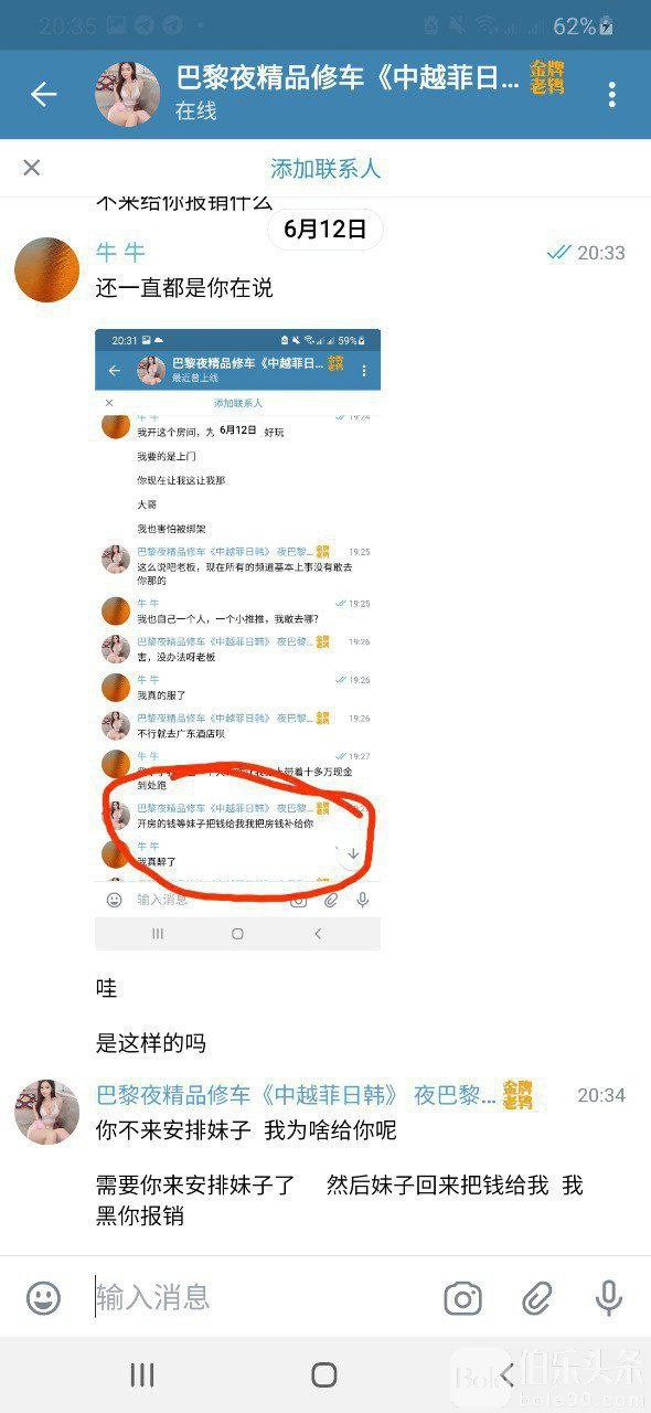 他又说晚上,晚上也行,晚上他找我说安排好了我就把房开了后面就这样了,妈的,坑人坑的理直气壮的,佩服佩服,@夜巴黎 害我开了个酒店700r 狗东西🌥