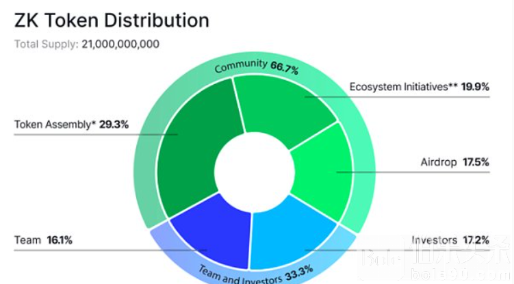 总供应量66.6%的ZK分配给社区:总供应量17.5%的ZK(约36.75亿枚)将一次性空投分配给社区;其余部分(49.1%)将通过ZKsync基金会管理的生态系统计划和ZK Nation治理流程随时间推移进行分配,以支持随着新用户上链而不断增长的生态系统。 总供应量33.3%分配给投资者和Matter Labs团队:17.2% 分配给投资者;16.1% 分配给 Matter Labs 团队。这些ZK代币锁定一年,然后在3年内解锁,即 2025年6月至2028年6月。 二、ZK空投概览据Matter Labs官方信息,总供应量17.5%的ZK将一次性空投给社区,且空投代币没有任何归属或锁定期,第一天即可完全流通。 加密社区有两种方式可以获得这17.5%约约36.75亿枚ZK的空投。 空投的资格和分配基于2024年3 月 24 日 UTC 时间 0:00 拍摄的ZKsync Era 和 ZKsync Lite活动快照,这个时间标志着 ZKsync Era 主网启动一周年。