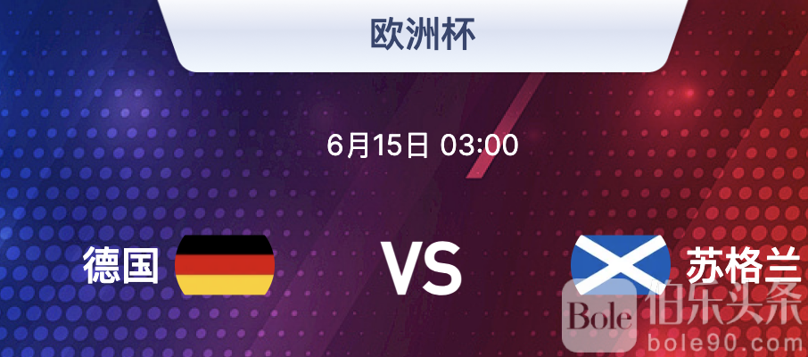 今天推荐的比赛不用多说就是 2024-06-15 03:00开赛的欧洲杯首赛! 德国 vs 苏格兰