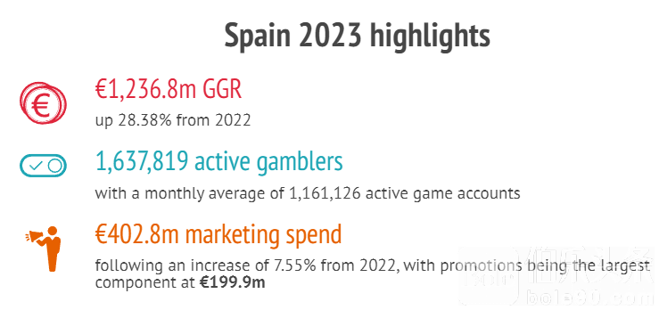 2023年西班牙第三季度博彩总收入 (GGR) 同比增长 23.6% 至 3.043 亿欧元(2.612 亿英镑/3.323 亿欧元)