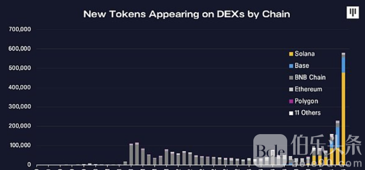 说到DEX,Solana的去中心化交易份额从2021年初的几乎为零飙升至2024年5月的24%以上。增长速度非常惊人,仅在2024年5月,Solana就占据了DEX交易增量的60%以上。这显示了Solana DEX生态系统背后的惊人发展势头,并突出了其高性能架构如何使其能够从竞争对手那里迅速夺取市场份额。