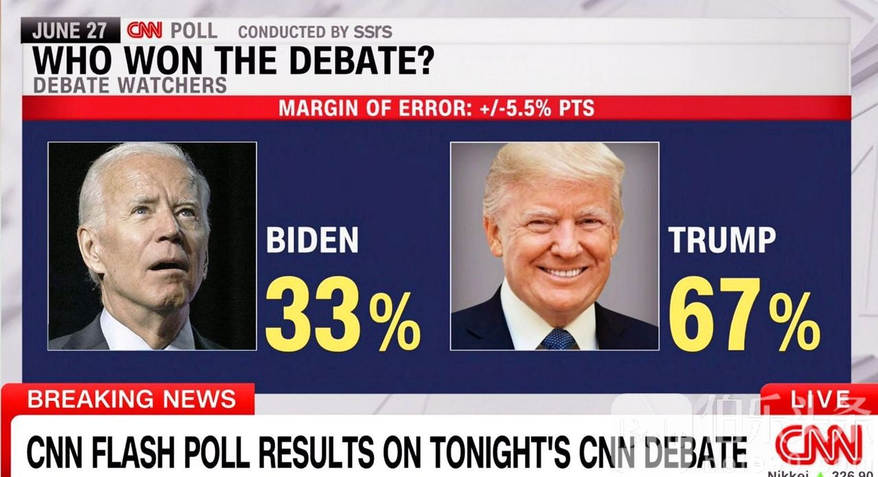 互动论坛 聊天灌水 2024 美国总统选举首场辩论,特朗普与拜登辩论民意调查结果:特朗普遥遥领先。