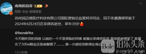国内两名医疗行业的中高层人员,6月20日在菲律宾马尼拉被绑架、于4天后(6月24日)被绑匪撕票!
