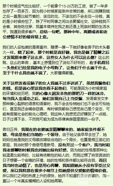 我做精聊是2015年去的菲律宾马尼拉,算是比较早接触这个行业,那个时候做的是期货盘,就是那种可以后台自由控制涨幅的投资模式,做的是男聊女。