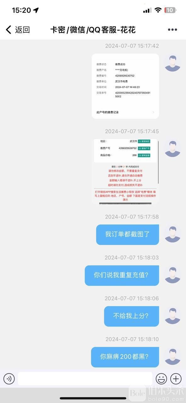 C7生活缴费充200不给上分,冲的时候订单号都截图了,说我重复充值,已经不是第一次了
