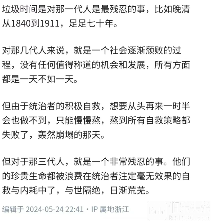 “历史的垃圾时间”。这个名词出自于奥派经济学家米塞斯,意思是当某段历史正处于违背经济规律、个人又无力改变、且整体必然走向失败的阶段,可以将其定义为历史的垃圾时间。