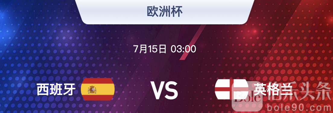 今天推荐 2024-07-15 03:00 开赛的 欧洲杯  西班牙 VS 英格兰