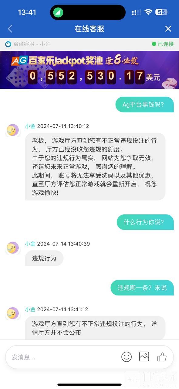 Ag博天堂,直接黑钱,赢了直接扣了,给你一句违规扣除了。没有任何条款和证据就说一句违规。钱不多。请ag集团看看,站长马老师?