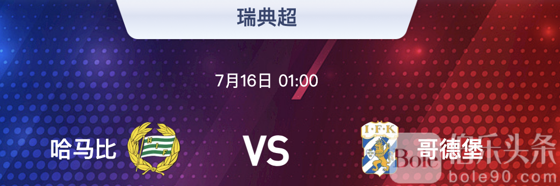 今天推荐 07月16日 01:00 开赛 瑞典超  哈马比 VS 哥德堡