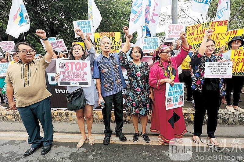 他们呼吁将前总统罗德里戈·杜特尔特和结束地方共产主义武装冲突国家工作组绳之以法,因为他们“下令并策划了针对卢马德学校的袭击”。