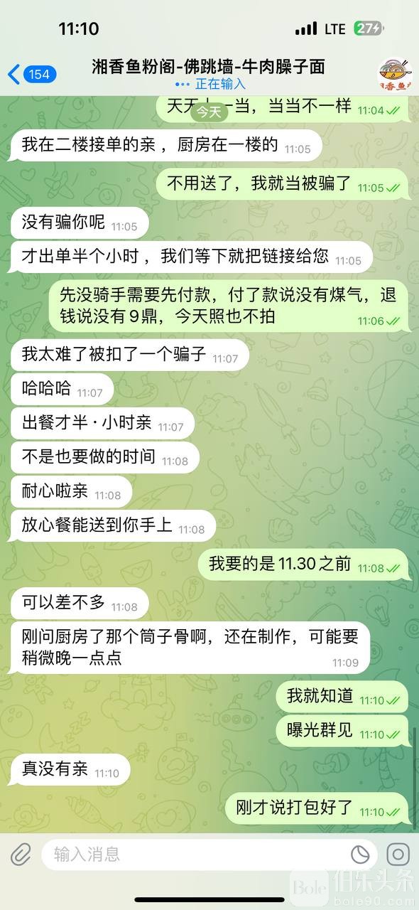 曝光一个餐馆,湘香鱼粉阁,一直要先收费,钱付了不送餐,一会没司机,一会没煤气,昨