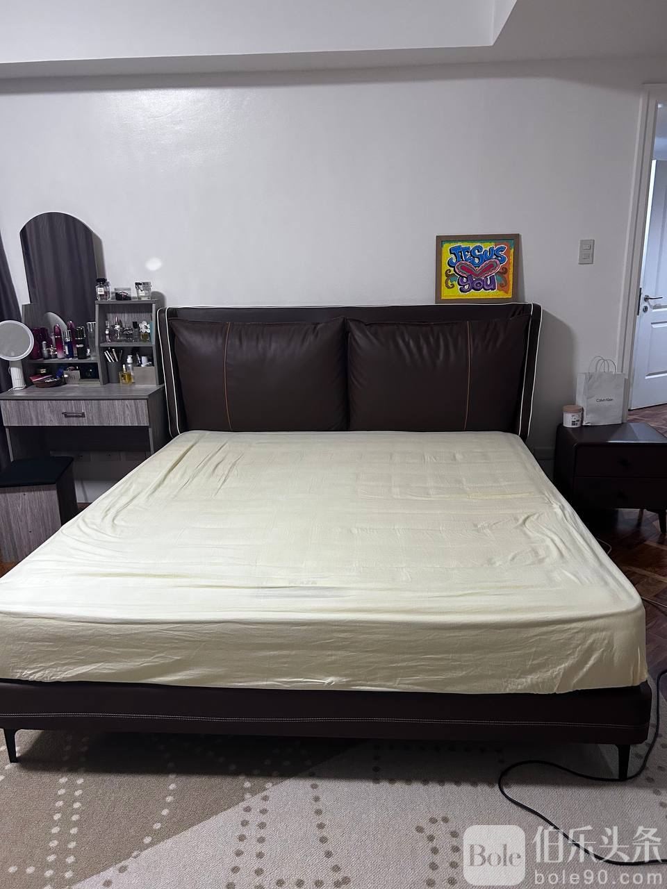 出售物品:1.8m*2.2m真皮大床+真皮床头柜(床垫不出)