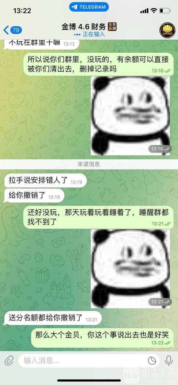 金贝飞投,送我288彩金,睡觉了,没玩,第二天睡醒群都找不到了,所以说金贝是可以无理由移除和清空账单有分的人吗