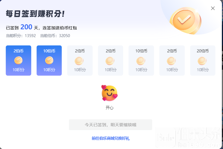 转眼又到了第二个里程碑,签到功能上线200天啦