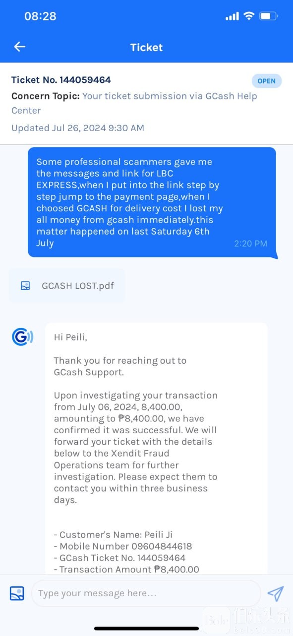 3-本来我去了警局、结果问一堆有的没的还要什么宣誓公证书好麻烦,所以果断放弃,选择直接准备好材料报案Gcash Help中心,获得报案回执Ticket
