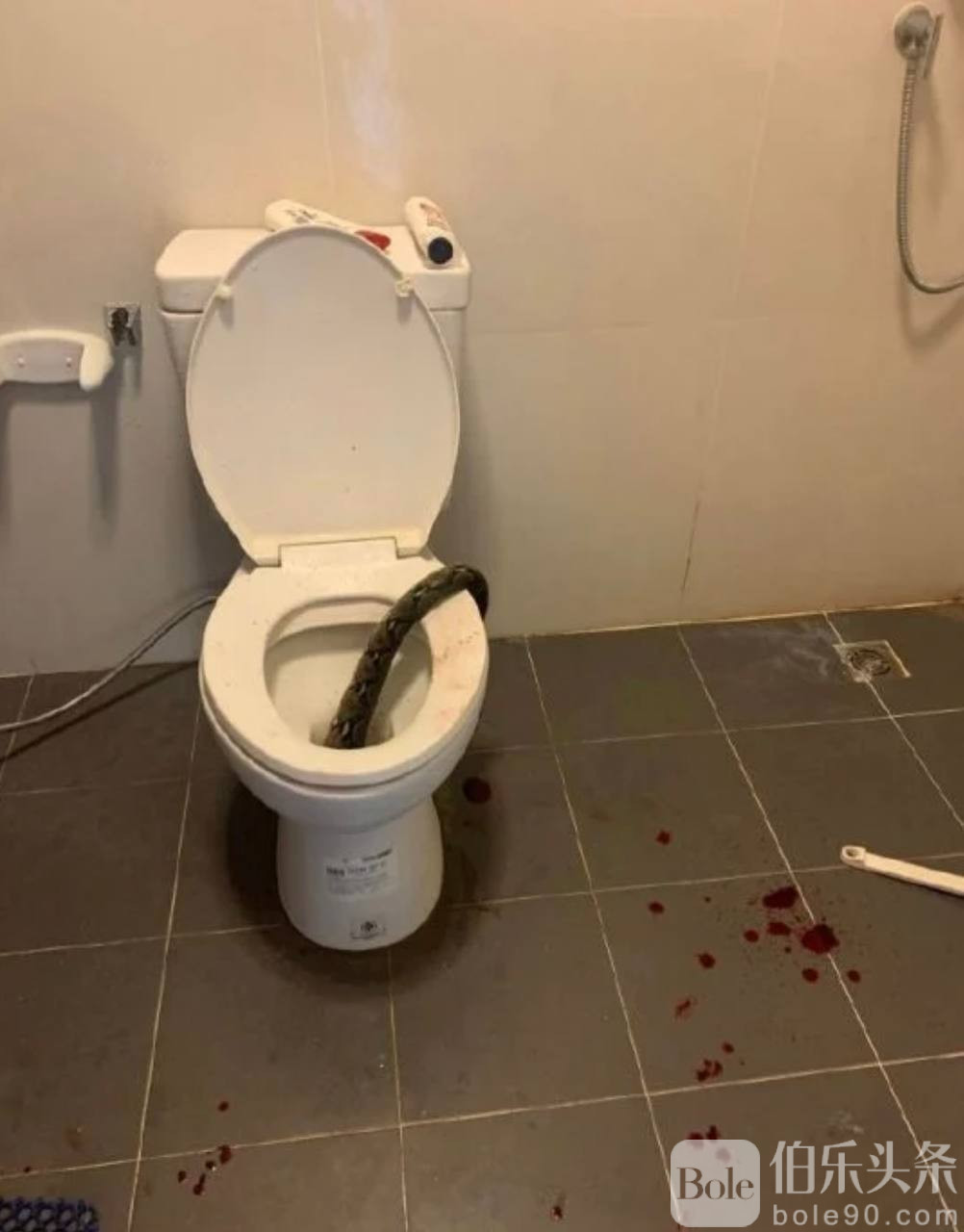 泰国一名男子日前经历了一场惊魂事件:在上厕所时,竟然遭到一条藏在马桶内的蟒蛇咬伤生殖器。尽管瞬间血溅满地,这名男子在慌乱中紧紧抓住蟒蛇,用厕所刷子将其乱棍打死,所幸蟒蛇无毒,男子得以保住“命根”。