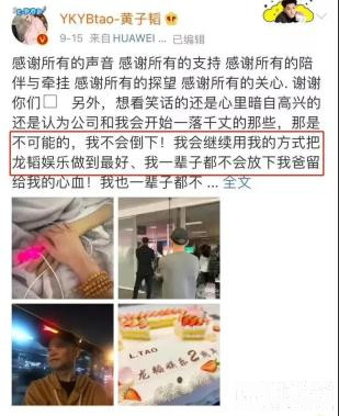 只是,刚出在事业上升期的他,却遭遇丧父之痛。2020年9月,其父亲黄忠东因病去世,年仅52岁。彼时,黄子韬悲痛之余公开表态称,“我不会倒下!我会继续用我的方式把龙韬娱乐做到最好、我一辈子都不会放下我爸留给我的心血!”
